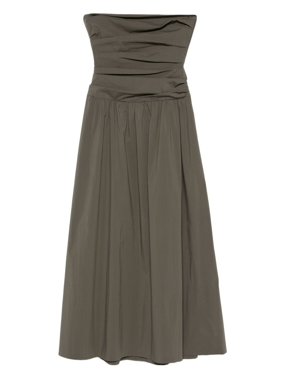 gathered-detail strapless midi dress Highlights - Khaki green Imported Composition Cotton 66%, Recycled Polyester 31%, Spandex/Elastane 3% SIZE & FIT Model measurements Height 5 ft 10 in(1.79 m) Bust/Chest 31.88 in(81 cm) Hips 35.43 in(90 cm) Waist 23.62 in(60 cm) Washing instructions Hand Wash