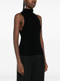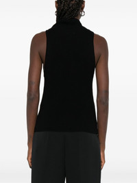 high-neck sleeveless top Highlights - Black - Ribbed texture - Mock neck - Sleeveless - Straight hem Imported Composition Merino 90%, Cashmere 10% SIZE & FIT Model measurements Height 5 ft 11 in(1.8 m) Bust/Chest 32.67 in(83 cm) Hips 36.22 in(92 cm) Waist 24.4 in(62 cm) Washing instructions Hand Wash