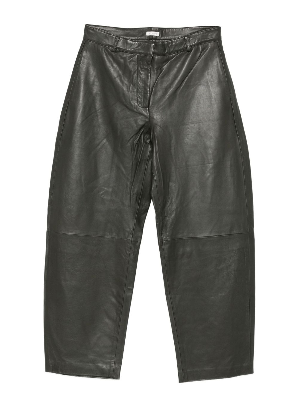 leather trousers Highlights - Khaki green - Leather - High waist - Concealed front fastening - Side pockets Imported Composition Lining: TENCEL™ 100% Outer: Lambskin 100% SIZE & FIT Model measurements Height 5 ft 11 in(1.8 m) Bust/Chest 32.67 in(83 cm) Hips 36.22 in(92 cm) Waist 24.4 in(62 cm) Washing instructions Specialist Cleaning