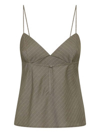 pinstripe cami top Highlights - Khaki - Pinstripe pattern - V-neckline - Thin straps - Central keyhole detail - Straight hemline Imported Composition Polyester 73%, Lyocell 21%, Linen/Flax 5%, Rayon 1% Washing instructions Read Manufacturer Guidelines