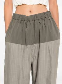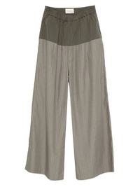 pinstriped trousers Highlights - Olive green - Elasticated waistband - Two side slit pockets - Rear welt pocket - Colour-block design Imported Composition Polyester 73%, Lyocell 21%, Linen/Flax 5%, Rayon 1% Washing instructions Hand Wash
