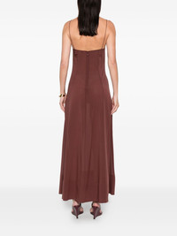 sheer slip straps maxi dress Highlights - Brown - Sheer detail - Panelled design Imported Composition Silk 88%, Elastane 12% SIZE & FIT Model measurements Height 5 ft 10 in(1.78 m) Bust/Chest 33.46 in(85 cm) Hips 36.22 in(92 cm) Waist 23.22 in(59 cm) Washing instructions Dry Clean Only