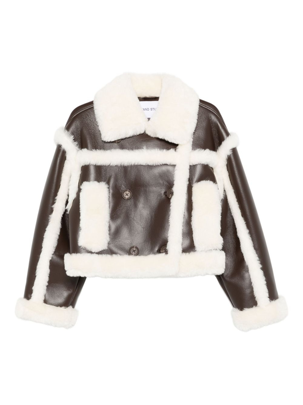 button-fastening shearling jacket Highlights - Dark brown - Fur trim - Button fastening - Front welt pockets - Long sleeves Imported Composition Lining: Polyurethane 100% Outer: Polyester 100% SIZE & FIT Model measurements Height 5 ft 8 in(1.73 m) Bust/Chest 29.92 in(76 cm) Hips 33.07 in(84 cm) Waist 23.22 in(59 cm) Washing instructions Read Manufacturer Guidelines
