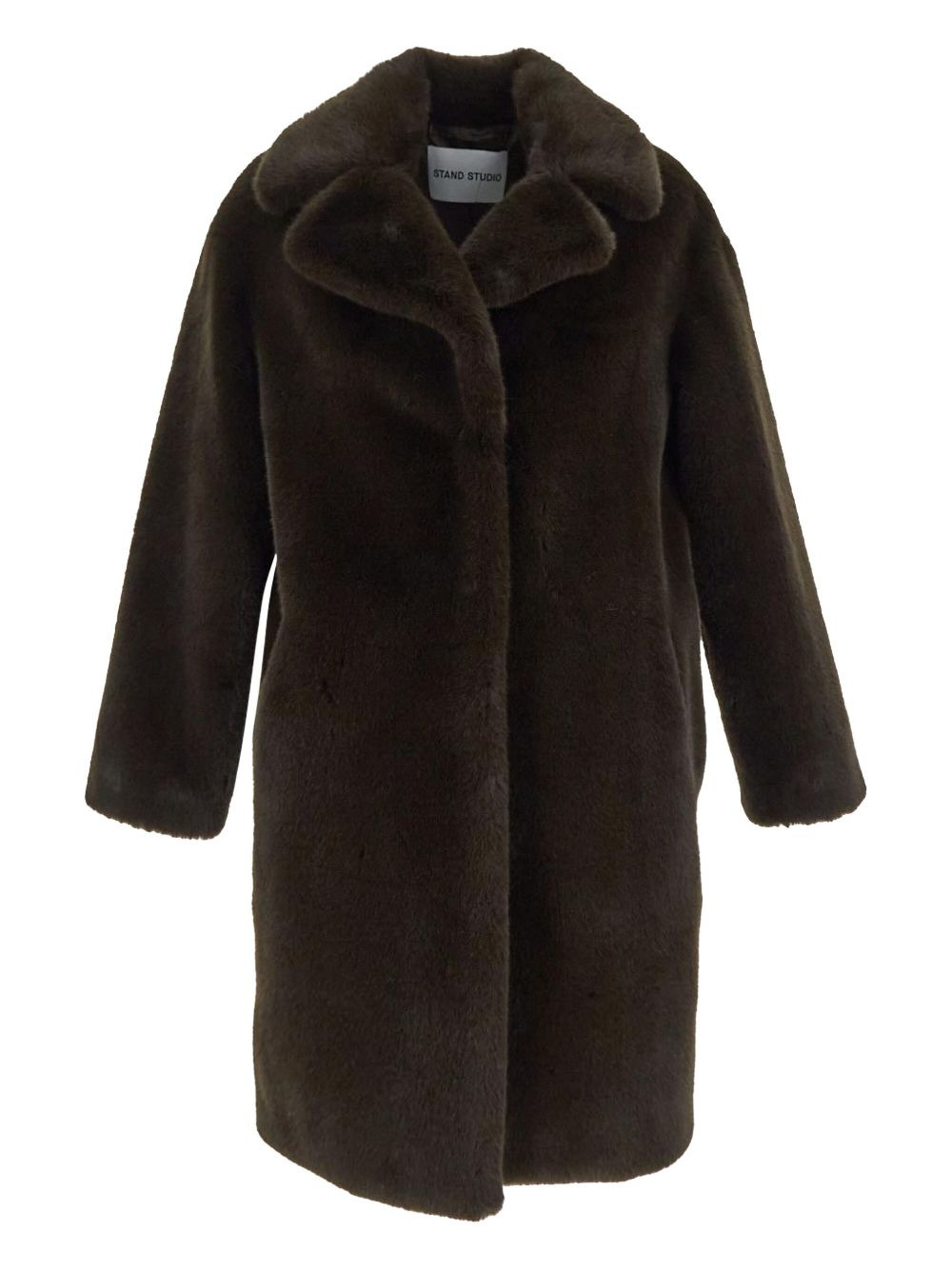 Camille coat Highlights - Coffee brown - Faux-fur design - Concealed front press-stud fastening - Notched lapels - Long sleeves - Two side slit pockets - Full lining - Straight hem - Knee-length Imported Composition Lining: Polyester 100% Outer: Polyester 100% SIZE & FIT FittingInformation Designed to be unstructured, offering a loose fit throughout Made from a midweight non-stretch fabric