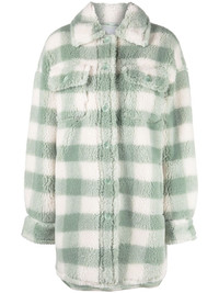 checked faux fur coat Designed in a pale green and white colourway, this singe-breasted coat from Stand Studio is defined by a faux-shearling texture and bold check pattern evocative of the brand's playful and contemporary take on outerwear for AW22. Imported Composition Outer: Cotton 100%, Polyester 80%, Wool 20% Lining: Polyester 100% SIZE & FIT Model measurements Height 5 ft 10 in(1.79 m) Bust/Chest 31.49 in(80 cm) Hips 35.03 in(89 cm) Waist 23.62 in(60 cm) FittingInformation This piece fits true to size. We recommend you get your regular size Cut for a loose fit Made with a mid-weight non-stretch fabric Washing instructions Dry Clean Only