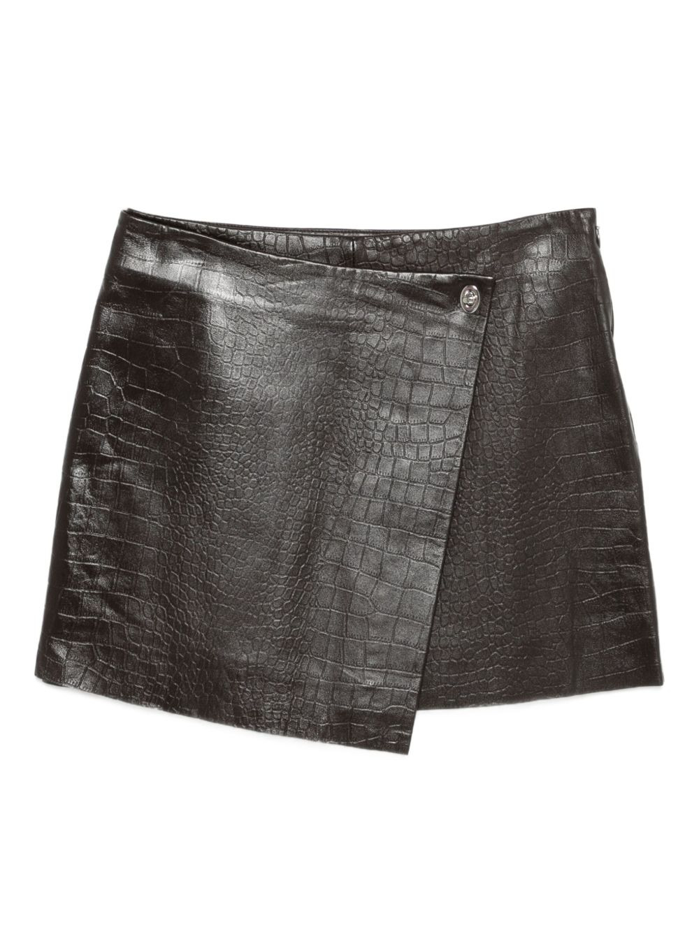 crocodile-effect asymmetric skirt Highlights - Dark brown - Crocodile effect - Asymmetric fastening Imported Composition Polyurethane 100% SIZE & FIT Model measurements Height 5 ft 11 in(1.8 m) Bust/Chest 31.49 in(80 cm) Hips 36.61 in(93 cm) Waist 24.4 in(62 cm) Washing instructions Read Manufacturer Guidelines