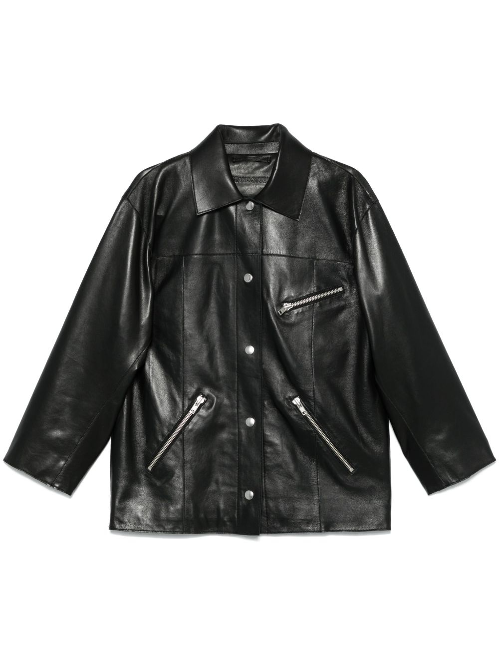 Elisia jacket Highlights - Black - Front press-stud fastening - Zip-fastening chest pocket - Long sleeves - Two side zip-fastening pockets Imported Composition Lamb Skin 100%, Polyester 85%, Viscose 15% SIZE & FIT Model measurements Height 5 ft 9 in(1.76 m) Bust/Chest 31.1 in(79 cm) Hips 36.61 in(93 cm) Waist 24.8 in(63 cm) FittingInformation Designed to be unstructured, offering a loose fit throughout Soft leather has a supple and smooth construction offering some flexibility