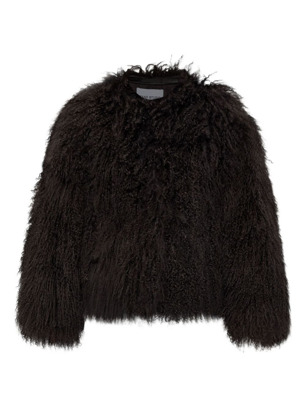 lamb-fur jacket Highlights - Brown - Fur texture - Round neck - Long sleeves - Cropped - Collarless Imported Composition Lamb Fur 100% Washing instructions Read Manufacturer Guidelines