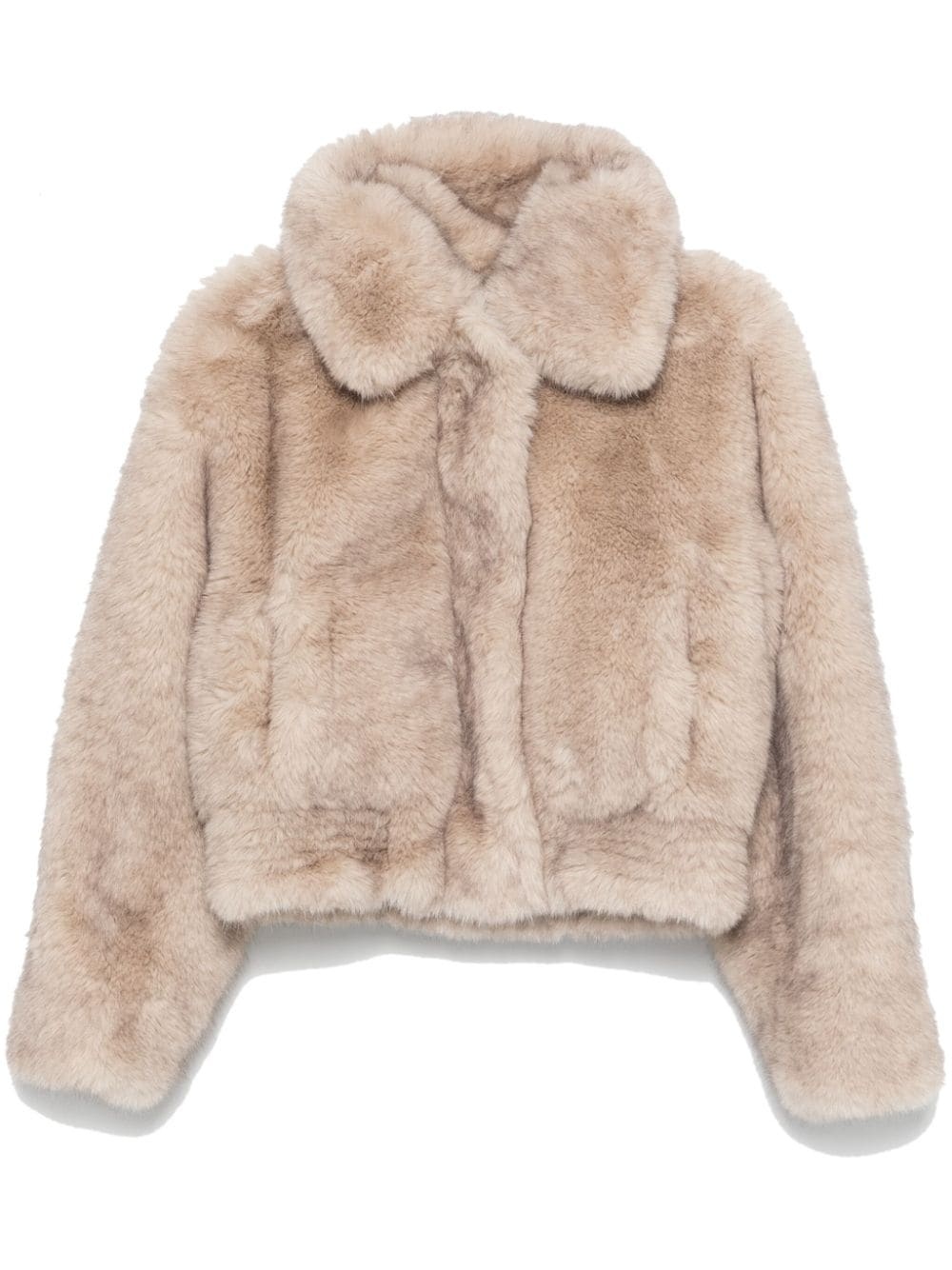 Lena jacket Highlights - Almond beige - Faux-fur design - Front press-stud and zip fastening - Spread collar - Long sleeves - Slip pockets to the sides - Diamond-quilted lining - Elasticated hem Imported Composition Outer: Polyester 100% Lining: Polyester 100% SIZE & FIT Model measurements Height 5 ft 8 in(1.72 m) Bust/Chest 31.88 in(81 cm) Hips 34.64 in(88 cm) Waist 23.62 in(60 cm) FittingInformation Designed to be unstructured, offering a loose fit throughout The elasticated hem allows for movement and a comfortable fit Made from a midweight non-stretch fabric