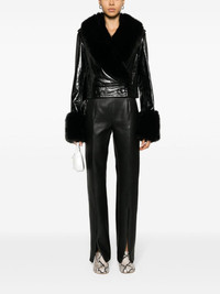 Nicolette faux-leather trousers Highlights - Black - Faux leather - Smooth grain - Slim cut - Concealed side zip fastening - Two rear welt pockets - Ankle zips Imported Composition Polyurethane 50%, Polyester 48%, Spandex/Elastane 2% SIZE & FIT Model measurements Height 5 ft 9 in(1.76 m) Bust/Chest 31.88 in(81 cm) Hips 35.43 in(90 cm) Waist 24.8 in(63 cm) FittingInformation Designed with a bootcut leg, these trousers allow for a close fit at the waist and with an unrestricted, comfortable fit and additional room at the calves The zipped hems allow you to adjust the fit throughout the calves and ankles Made from a midweight stretch fabric, this piece offers elasticity and flexibility when worn This piece fits true to size – take your usual size Washing instructions Dry Clean Only