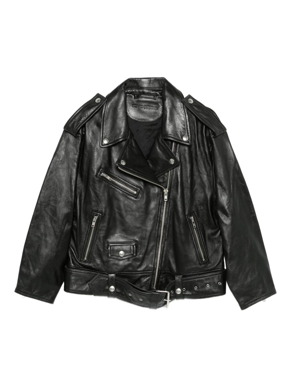 zip-up leather jacket Highlights - Black - Long sleeves - Front zip fastening - Front zip-fastening pockets - Adjustable hem Imported Composition Lambskin 100% Lining: Polyester 85%, Viscose 15% SIZE & FIT Model measurements Height 5 ft 11 in(1.8 m) Bust/Chest 31.49 in(80 cm) Hips 36.61 in(93 cm) Waist 24.4 in(62 cm) Washing instructions Read Manufacturer Guidelines