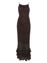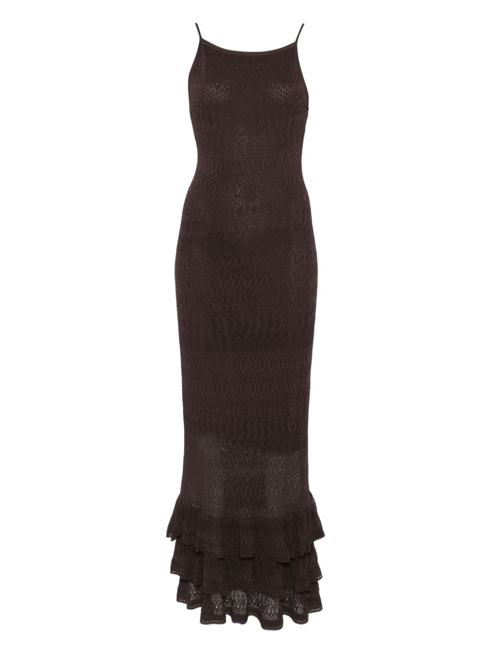 Bliss ruffled dress Highlights - Brown - Spaghetti straps - Ruffled hem - Close-fitting bodice - Maxi length Imported Composition Viscose 80%, Nylon 20% SIZE & FIT Model measurements Height 5 ft 10 in(1.78 m) Bust/Chest 31.49 in(80 cm) Hips 37 in(94 cm) Waist 23.62 in(60 cm) Washing instructions Read Manufacturer Guidelines