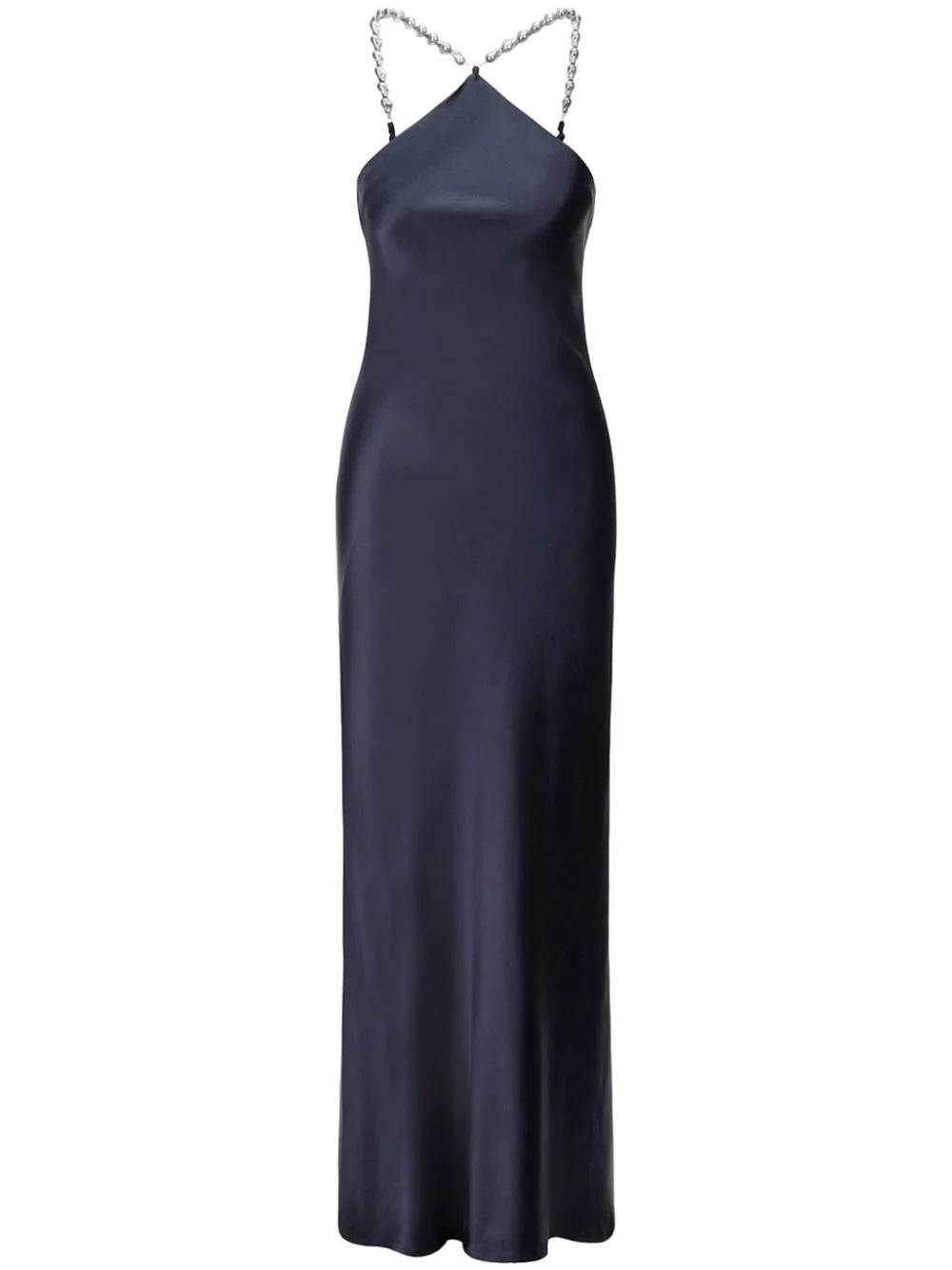 Cadence satin maxi dress Highlights - Navy blue - Satin finish - Bead detailing - Halterneck - Concealed rear zip fastening - Sleeveless - Fitted waistline - Floor-length - Straight hem Imported Composition Acetate 76%, Polyester 24% Washing instructions Dry Clean Only