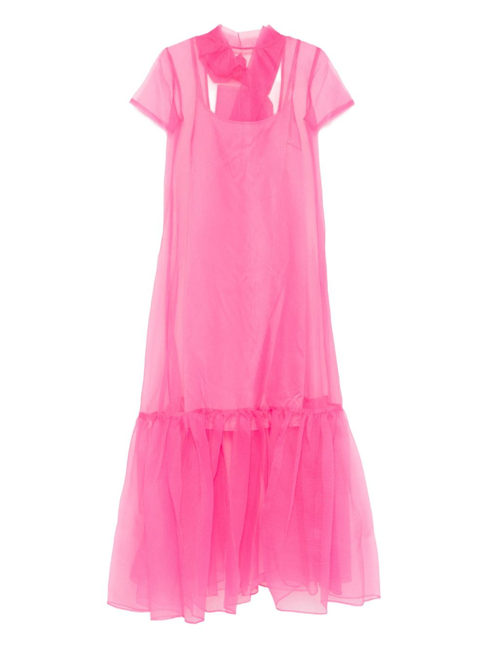 Calluna ruffled short-sleeved maxi dress Highlights - Pink - Ruffled hem - Short sleeves - Sheer fabric - Bow detail - Removable slip Imported Composition Polyester 95%, Elastane 5% SIZE & FIT Model measurements Height 5 ft 9 in(1.75 m) Bust/Chest 32.67 in(83 cm) Hips 36.22 in(92 cm) Waist 24.8 in(63 cm) Washing instructions Machine Wash