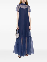 Calunna organza maxi dress Highlights - Navy blue - Cotton - Rear bow fastening - Semi-sheer construction - Stand-up collar - Scoop back - Short sleeves - Partial lining - Flared hem - Floor-length Imported Composition Cotton 100% Outer: Polyester 100% SIZE & FIT Model measurements Height 5 ft 10 in(1.78 m) Bust/Chest 29.13 in(74 cm) Hips 35.43 in(90 cm) Waist 23.62 in(60 cm) Measurement HIPS 38.58 in(98 cm) LENGTH 60.62 in(154 cm) WAIST 32.28 in(82 cm) FittingInformation Designed to be unstructured, offering a loose fit throughout The detachable slip sits just away from the body, offering a close yet comfortable fit Made from a lightweight non-stretch fabric This piece fits true to size – take your usual size Washing instructions Dry Clean Only