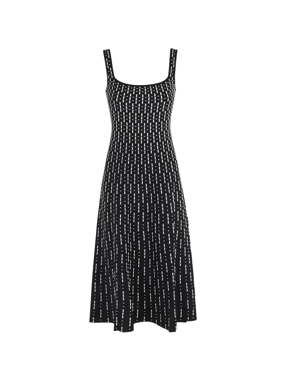Ellison square-neck knitted midi dress Highlights - Black - Geometric pattern - Midi length - Sleeveless - Square neck Imported Composition Viscose 65%, Nylon 35% Washing instructions Read Manufacturer Guidelines