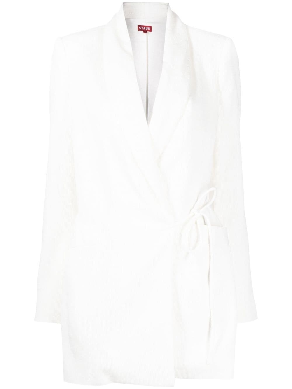 Everly tie-fastened blazer The Everly blazer from STAUD's SS23 collection is the epitome of minimalism. Presented here in white, it features a corduroy construction, side tie fastening and long sleeves. Imported Composition Rayon 80%, Nylon 20% SIZE & FIT Model measurements Height 5 ft 11 in(1.8 m) Bust/Chest 28.34 in(72 cm) Hips 35.43 in(90 cm) Waist 23.62 in(60 cm) Washing instructions Dry Clean Only