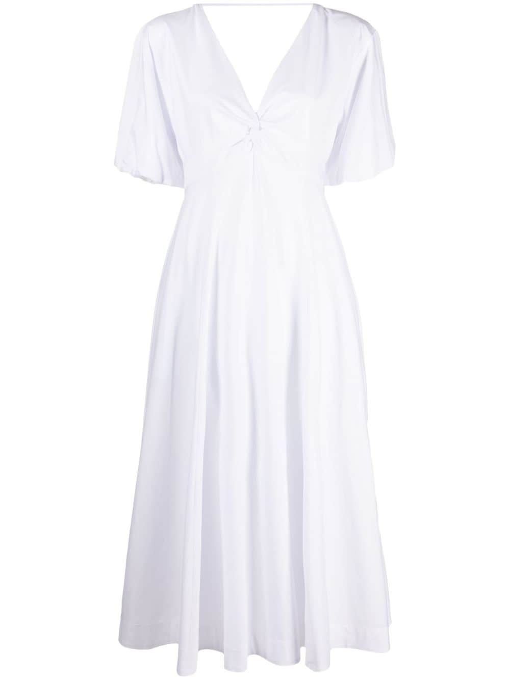 Finley V-neck midi dress Highlights - White - Cotton blend - Twist detailing - V-neck - V-back - A-line - Balloon sleeves - Short sleeves - Mid-length Imported Composition Cotton 98%, Elastane 2% SIZE & FIT Model measurements Height 5 ft 10 in(1.77 m) Bust/Chest 31.49 in(80 cm) Hips 35.43 in(90 cm) Waist 25.19 in(64 cm) FittingInformation Designed for a close fit at the chest and waist with a loose fit at the hip Made from a midweight stretch fabric, this piece offers elasticity and flexibility when worn This piece fits true to size – take your usual size Washing instructions Machine Wash