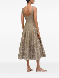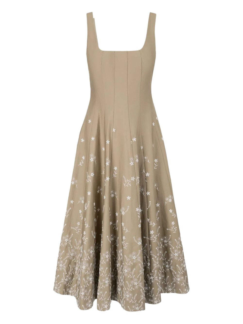 floral-embroidered midi dress Highlights - Taupe brown - Floral embroidery - Square neck - Sleeveless - Zip fastening - Panelled construction Imported Composition Cotton 98%, Spandex/Elastane 2% Washing instructions Read Manufacturer Guidelines