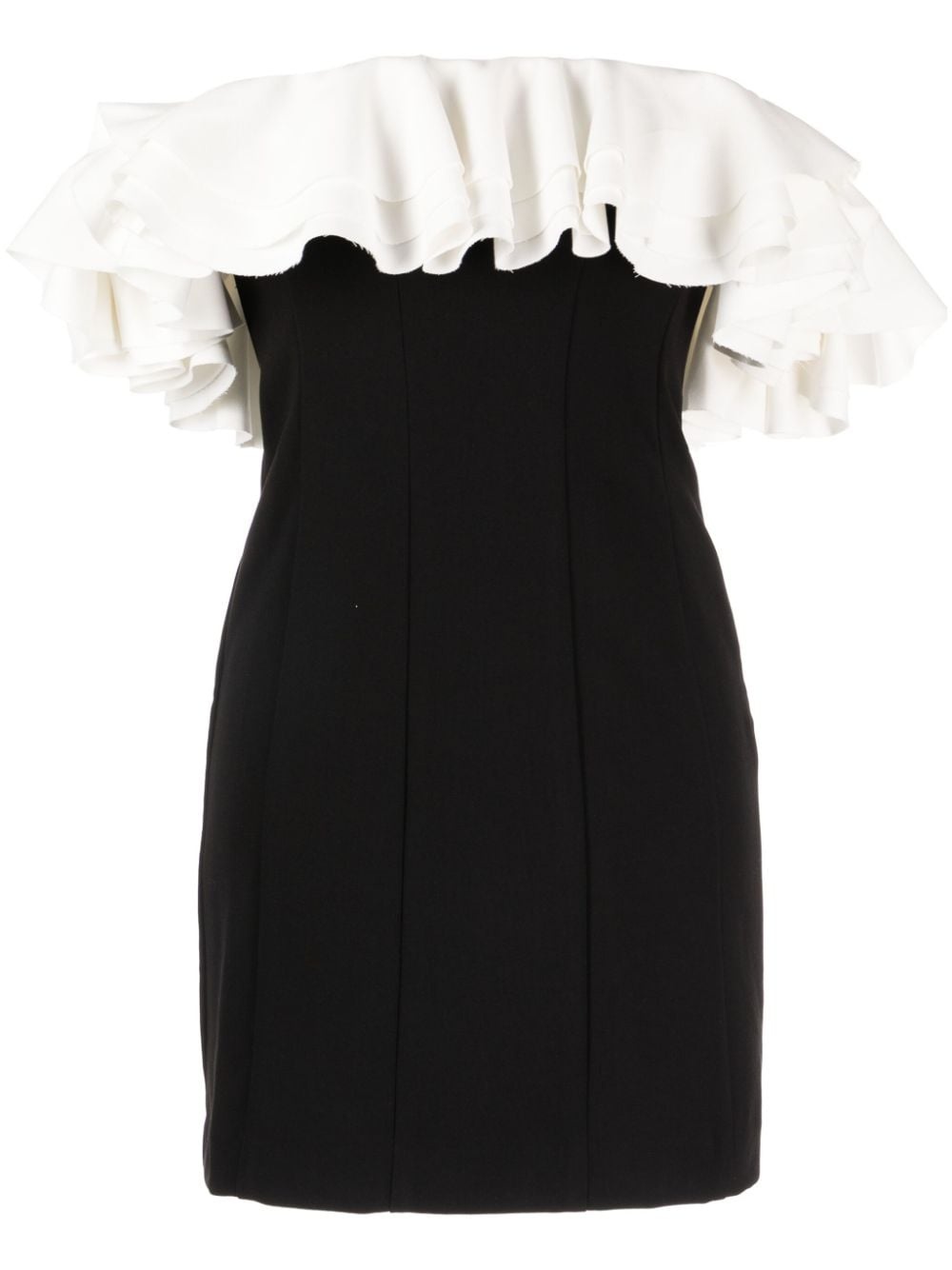 Kiara ruffled minidress Highlights - Black/white - Stretch-design - Ruffled detailing - Square neck - Off-shoulder - Straight hem - Thigh-length Imported Composition Polyester 68%, Viscose 27%, Elastane 5% SIZE & FIT Model measurements Height 5 ft 10 in(1.78 m) Bust/Chest 29.13 in(74 cm) Hips 35.43 in(90 cm) Waist 23.62 in(60 cm) Measurement CHEST 29.13 in(74 cm) HIPS 30.7 in(78 cm) LENGTH 25.59 in(65 cm) WAIST 24.4 in(62 cm) FittingInformation Designed for a close fit throughout The elasticated shoulders offer movement and a comfortable fit Made from a midweight stretch fabric, this piece offers elasticity and flexibility when worn This piece fits true to size – take your usual size Washing instructions Dry Clean Only