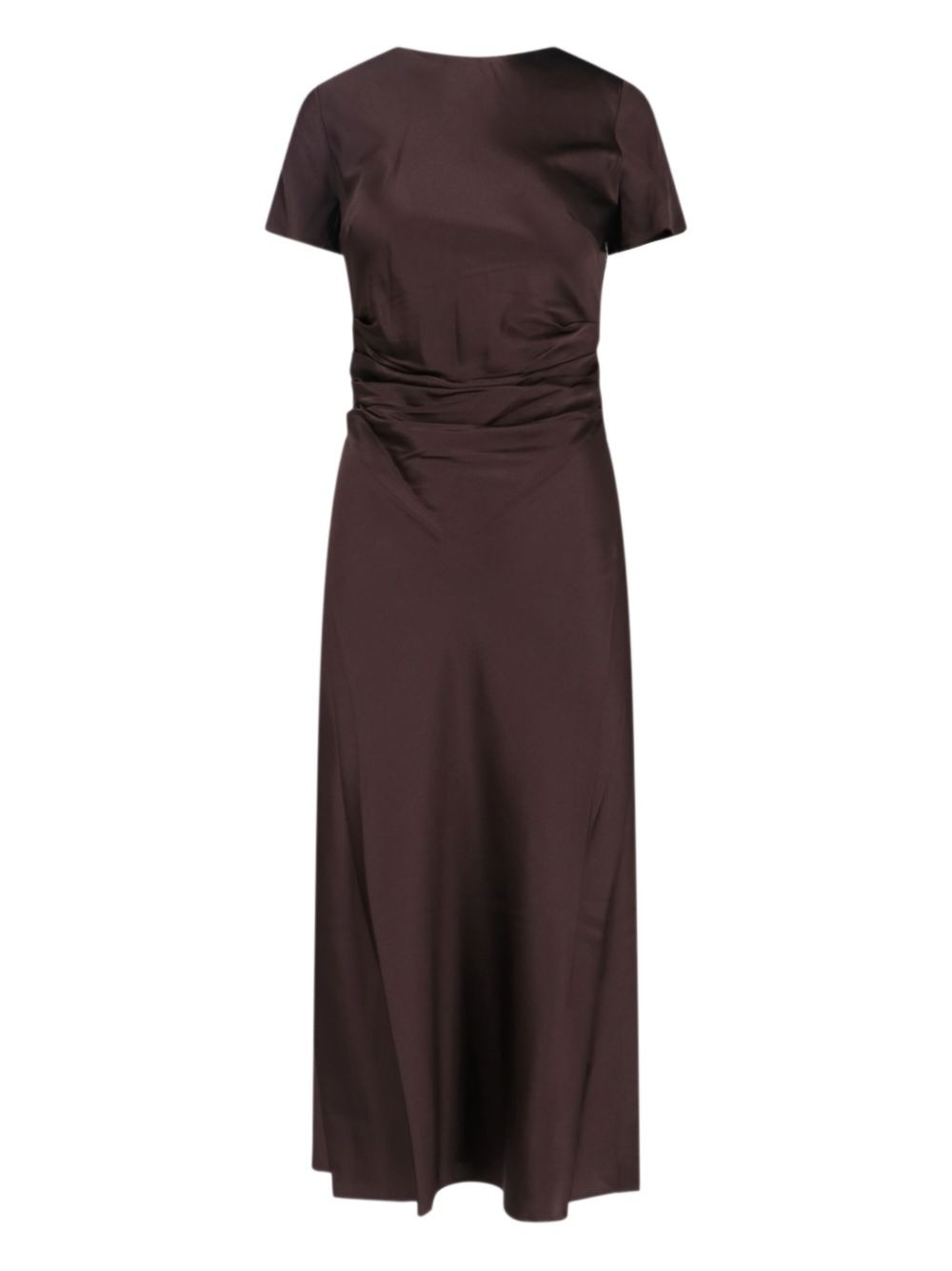 Phare ruched midi dress Highlights - Brown - Short sleeves - Ruched detailing - Rear button fastening - V-neck - Midi length Imported Composition Silk 93%, Spandex/Elastane 7% Washing instructions Dry Clean Only