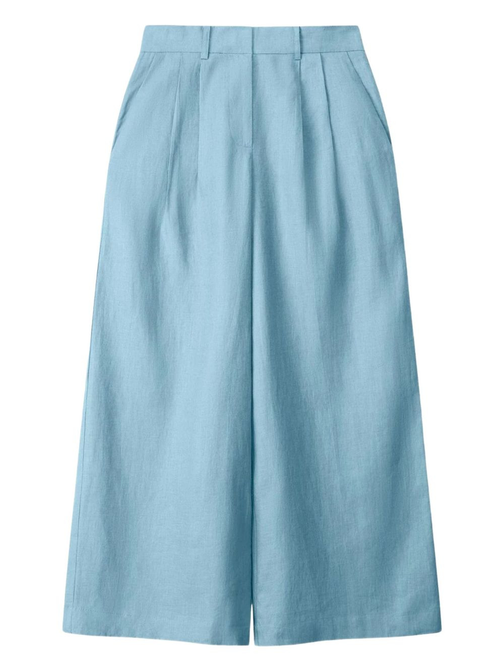 pleated linen pants Highlights - Blue - Pleated front - Belt loops - Side seam pockets - Wide leg - Concealed fastening Imported Composition Linen/Flax 100% Washing instructions Dry Clean Only