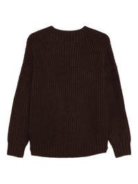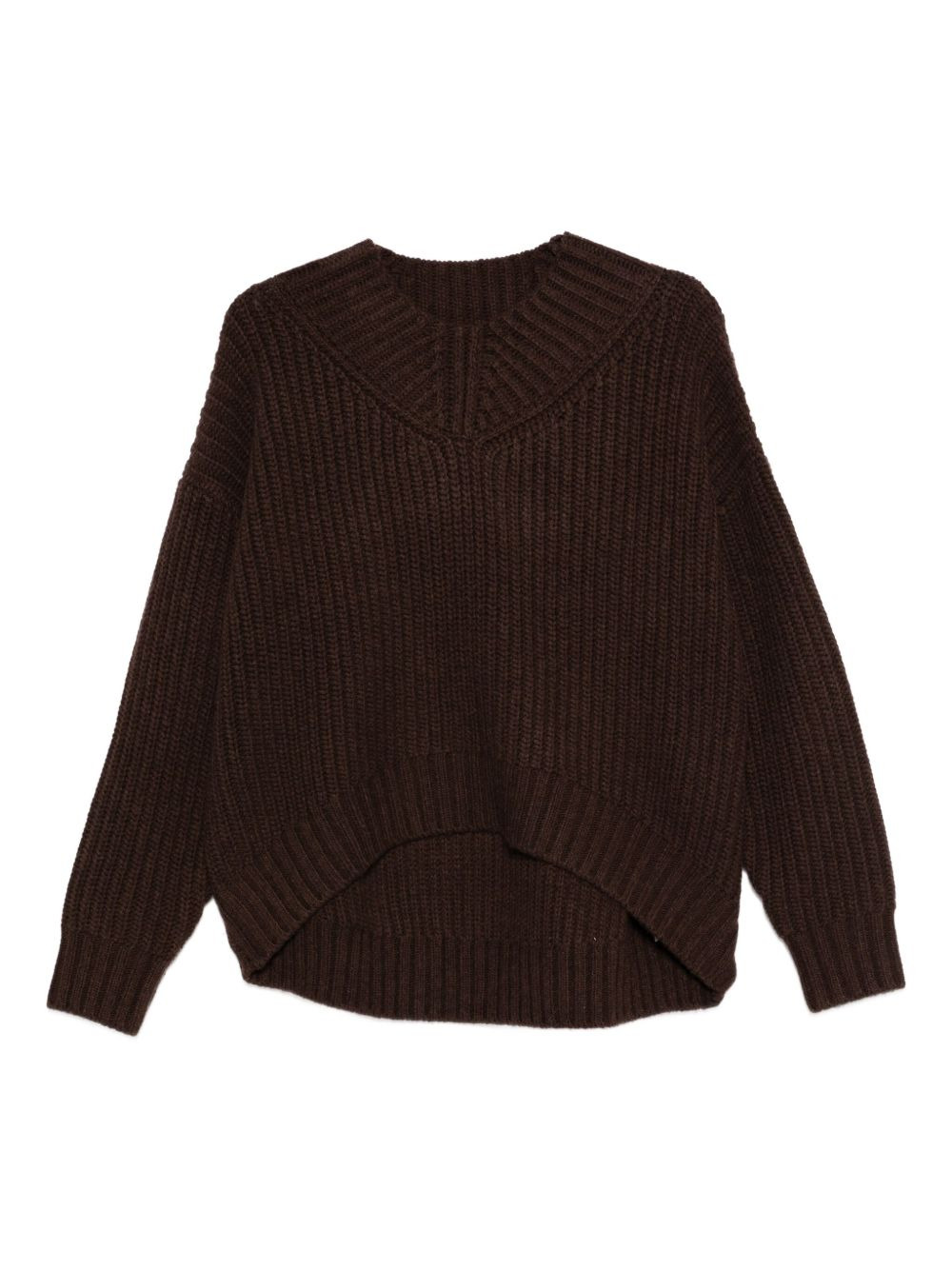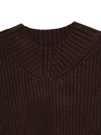 ribbed V-neck sweater Highlights - Brown - Ribbed knit - V-neck - High neckline - Dropped hem - Long sleeves Imported Composition Wool 51%, Nylon 49% Washing instructions Read Manufacturer Guidelines