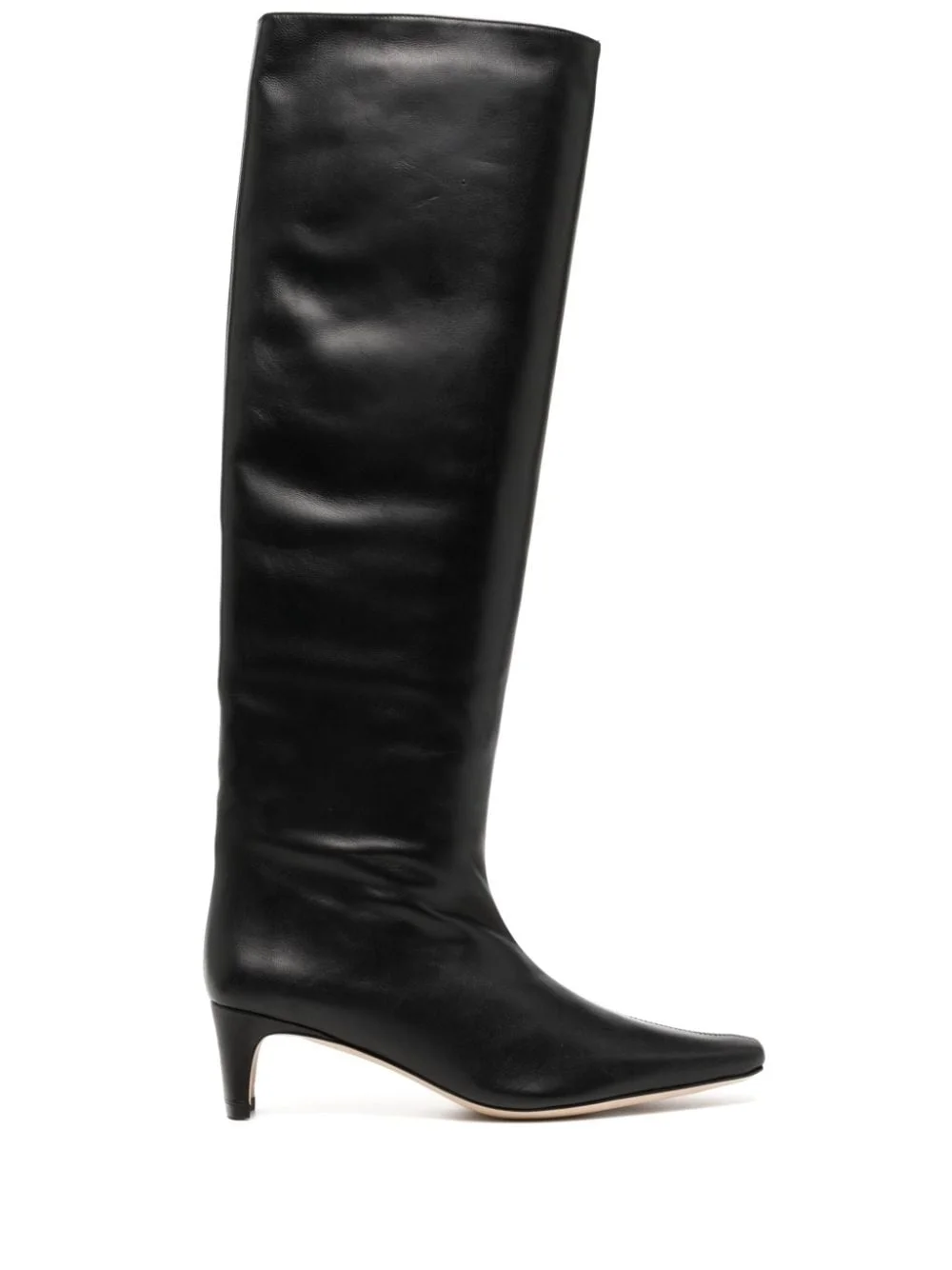 Wally 55mm knee-high leather boots Highlights - Black - Calf leather - Smooth grain - Pointed toe - Pull-on style - Knee-high - 55mm slim tapered heel - Leather outsole Imported Composition Outer: Calf Leather 100% Sole: Calf Leather 100% Lining: Calf Leather 100% SIZE & FIT Measurement HEEL 2.16 in(5.5 cm) HEIGHT 18.11 in(46 cm)