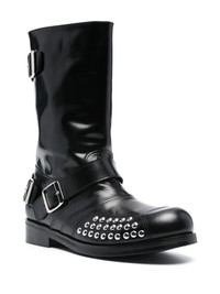 leather biker boots Highlights - Black - Leather - Stud embellishment - Decorative buckle detailing - Low stacked heel - Silver-tone hardware - Slip-on style - This piece comes complete with a protective dust bag. Imported Composition Outer: Bos Taurus 100% Lining: Bos Taurus 100% Sole: Leather 100% SIZE & FIT Measurement CIRCUMFERENCE 12.59 in(32 cm) HEEL 1.29 in(3.3 cm) HEIGHT 11.02 in(28 cm) Sole height 0.55 in(1.4 cm)