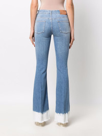 70's dip dye flared jeans Stella McCartney brings new life to the classic flare jeans. Crafted from stretch cotton, this pair of jeans feature a mid-rise, a four-pocket design and stand out thanks to the tie-dye effect applied on the flared hem. Highlights - Blue - Stretch cotton - Mid-rise - Belt loops - Flared - Tie-dye print - Two rounded pockets to the sides - Two rear patch pockets Made in Italy Composition Outer: Cotton 98%, Spandex/Elastane 2% Lining: Polyester 55%, Cotton 45% SIZE & FIT Model measurements Height 5 ft 11 in(1.8 m) Bust/Chest 31.49 in(80 cm) Hips 35.43 in(90 cm) Waist 24.4 in(62 cm) Washing instructions Machine Wash