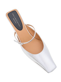 90mm buckle-fastening slingback mules Highlights - Silver-tone - Pointed toe - Branded insole - Buckle-fastening ankle strap - Mid stiletto heel Made in Italy Composition Outer: Polyester 54%, Polyurethane 46% Sole: Rubber 100% Lining: Fabric 100% SIZE & FIT Measurement HEEL 3.54 in(9 cm)