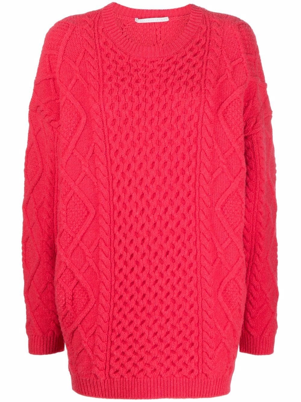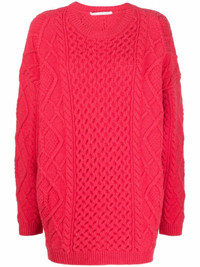 Aran crew neck jumper Stella McCartney elevates this jumper with its bold use of colour. Part of the brand's AW22 collection, this pick is designed in a bright shade of fuchsia and boasts a classic Aran construction and slouchy fit for an ideal balance of timelessness and modernity. Highlights - Fuchsia pink - Aran knit - Knitted construction - Crew neck - Long sleeves - Dropped shoulders - Ribbed hem - Ribbed cuffs Made in Italy Composition Cotton 100% SIZE & FIT Model measurements Height 5 ft 9 in(1.75 m) Bust/Chest 32.67 in(83 cm) Hips 36.22 in(92 cm) Waist 24.8 in(63 cm) FittingInformation This piece fits true to size. We recommend you get your regular size Cut for an oversized fit Made with a mid-weight fabric Washing instructions Dry Clean Only