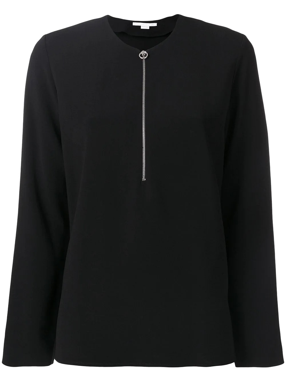 Arlesa blouse Stella McCartney has developed a signature brand of sports-inspired silhouettes remixed with expert tailoring and a minimalistic femininity. A versatile wardrobe staple, this black Arlesa blouse is from the label's AW17 collection. Lightweight and loose-fitting, the piece features a round neckline, a partial silver-tone front zip fastening, long sleeves, side slits and a step hem. POSITIVELY CONSCIOUS: We’ve joined forces with ethical agency Good On You to give you the power to choose positively. This piece is from a brand that scores well on their key criteria. Imported Composition Viscose 64%, Acetate 12%, Spandex/Elastane 4% SIZE & FIT Model measurements Height 5 ft 10 in(1.79 m) Bust/Chest 32.67 in(83 cm) Hips 33.46 in(85 cm) Waist 24.01 in(61 cm) Washing instructions Dry Clean Only