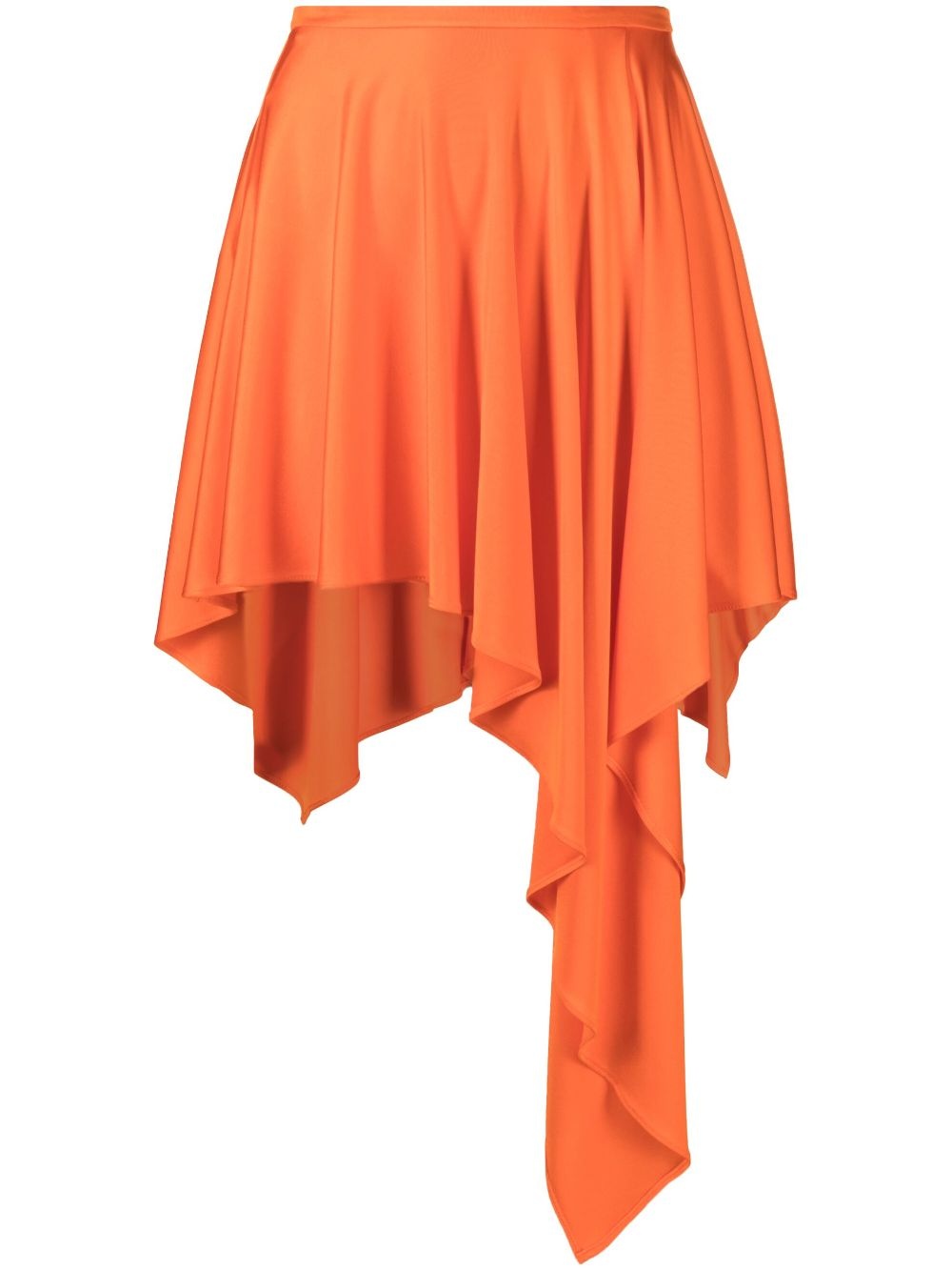 asymmetric draped skirt Highlights - Carrot orange - Draped design - High-waisted - Concealed rear fastening - Asymmetric hem Imported Composition Viscose 100% SIZE & FIT Model measurements Height 5 ft 10 in(1.77 m) Bust/Chest 31.49 in(80 cm) Hips 35.03 in(89 cm) Waist 23.22 in(59 cm) FittingInformation Designed with an asymmetric hem, this skirt is intended to be worn just below the waist Made from a midweight non-stretch fabric, this piece offers minimal elasticity when worn This piece fits true to size – take your usual size Washing instructions Dry Clean Only