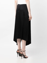 asymmetric high-waisted midi skirt Highlights - Black - Satin finish - High waist - Side slit - Concealed rear zip fastening - Asymmetric hem Made in Italy Composition Viscose 59%, Acetate 41% SIZE & FIT Model measurements Height 5 ft 10 in(1.79 m) Bust/Chest 31.49 in(80 cm) Hips 33.85 in(86 cm) Waist 23.22 in(59 cm) FittingInformation Designed with an asymmetric hem, this skirt is intended to be worn low on the hips Made from a lightweight non-stretch fabric This piece fits true to size – take your usual size Washing instructions Dry Clean Only