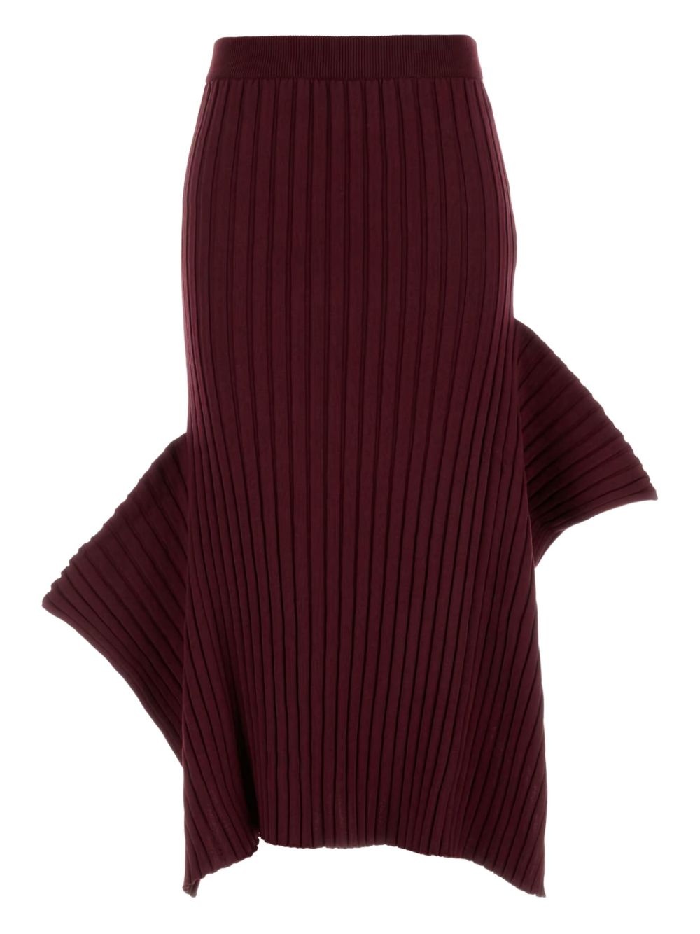 Asymmetric ribbed organic cotton midi skirt Burgundy