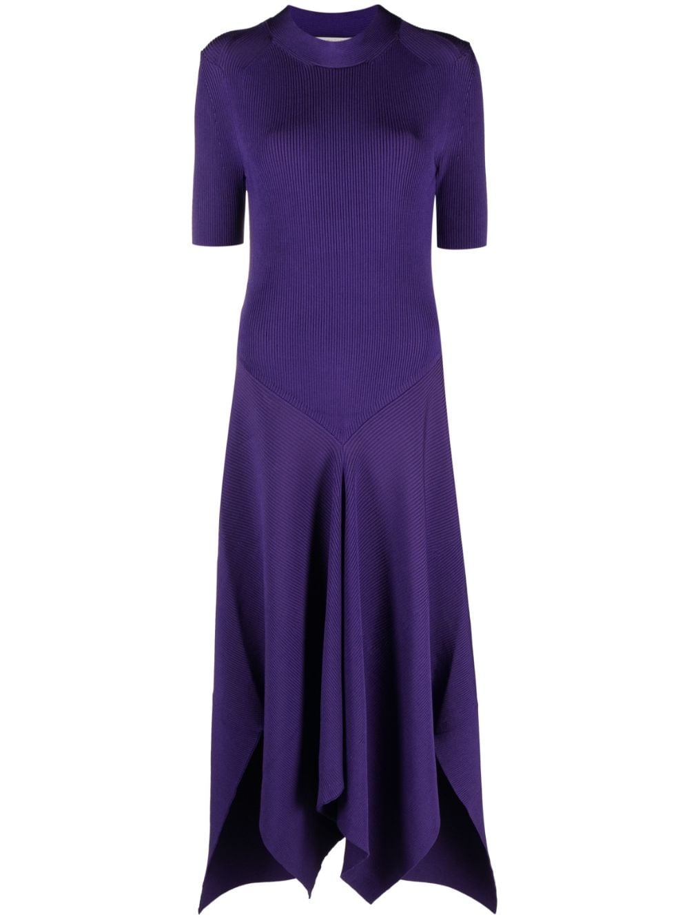 asymmetric ribbed-knit dress dark purple ribbed knit mock neck short sleeves asymmetric hem ankle-length Imported Composition Viscose 79%, Polyamide 19%, Elastane 2% SIZE & FIT Model measurements Height 5 ft 9 in(1.75 m) Bust/Chest 31.49 in(80 cm) Hips 34.05 in(86.5 cm) Waist 24.21 in(61.5 cm) FittingInformation Designed for a close fit throughout Made with a midweight knit, this piece offers some stretch This piece fits true to size – take your usual size Measurement BUST 25.98 in(66 cm) LENGTH 47.99 in(121.9 cm) WAIST 25.98 in(66 cm) SLEEVE LENGTH 10.98 in(27.9 cm) HIPS 34.01 in(86.4 cm)