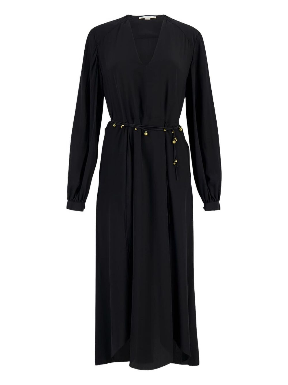 beaded-belt midi dress Highlights - Black - V-neck - Long sleeves - Buttoned cuffs - Beaded belt - Midi length Imported Composition Fabric 100% Washing instructions Read Manufacturer Guidelines