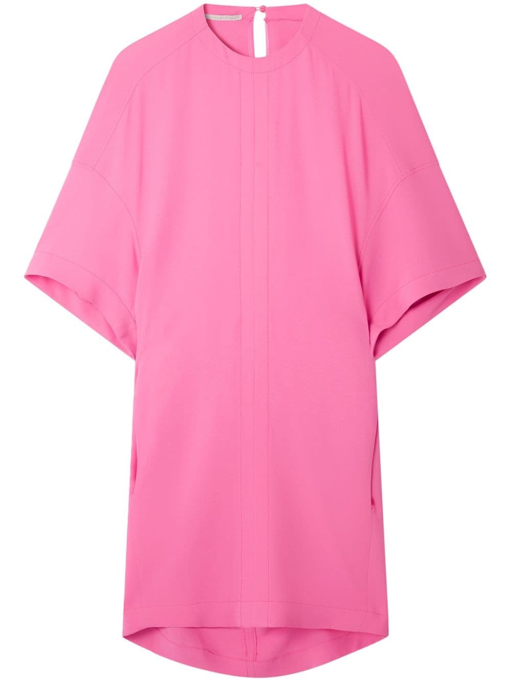 bell-sleeve T-shirt dress Imagined in pink, this T-shirt dress by Stella McCartney is cut from a silk blend. Its casual silhouette is characterised by floaty bell sleeves. Highlights - Pink - Silk blend - Crew neck - Short bell sleeves - Rear button fastening - Thigh-length - Straight hem Made in Italy Composition Viscose 100% SIZE & FIT FittingInformation Designed for a loose fit at the chest with a close fit over the waist and hips Made from a midweight stretch fabric, this piece offers elasticity and flexibility when worn This piece fits true to size – take your usual size Washing instructions Read Manufacturer Guidelines