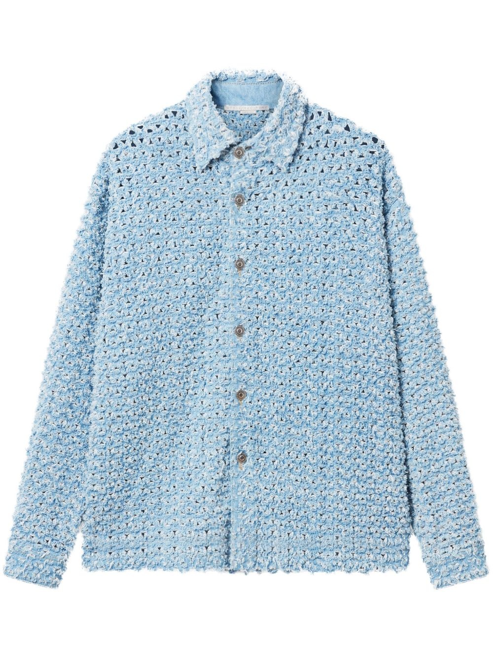 boucle denim shirt Highlights - Blue - Cotton - Denim - Boucle design - Front button fastening - Classic collar - Long sleeves - Straight hem Made in Italy Composition Regenerative Cotton 100%, Polyester 57%, Fabric 43% Washing instructions Read Manufacturer Guidelines