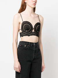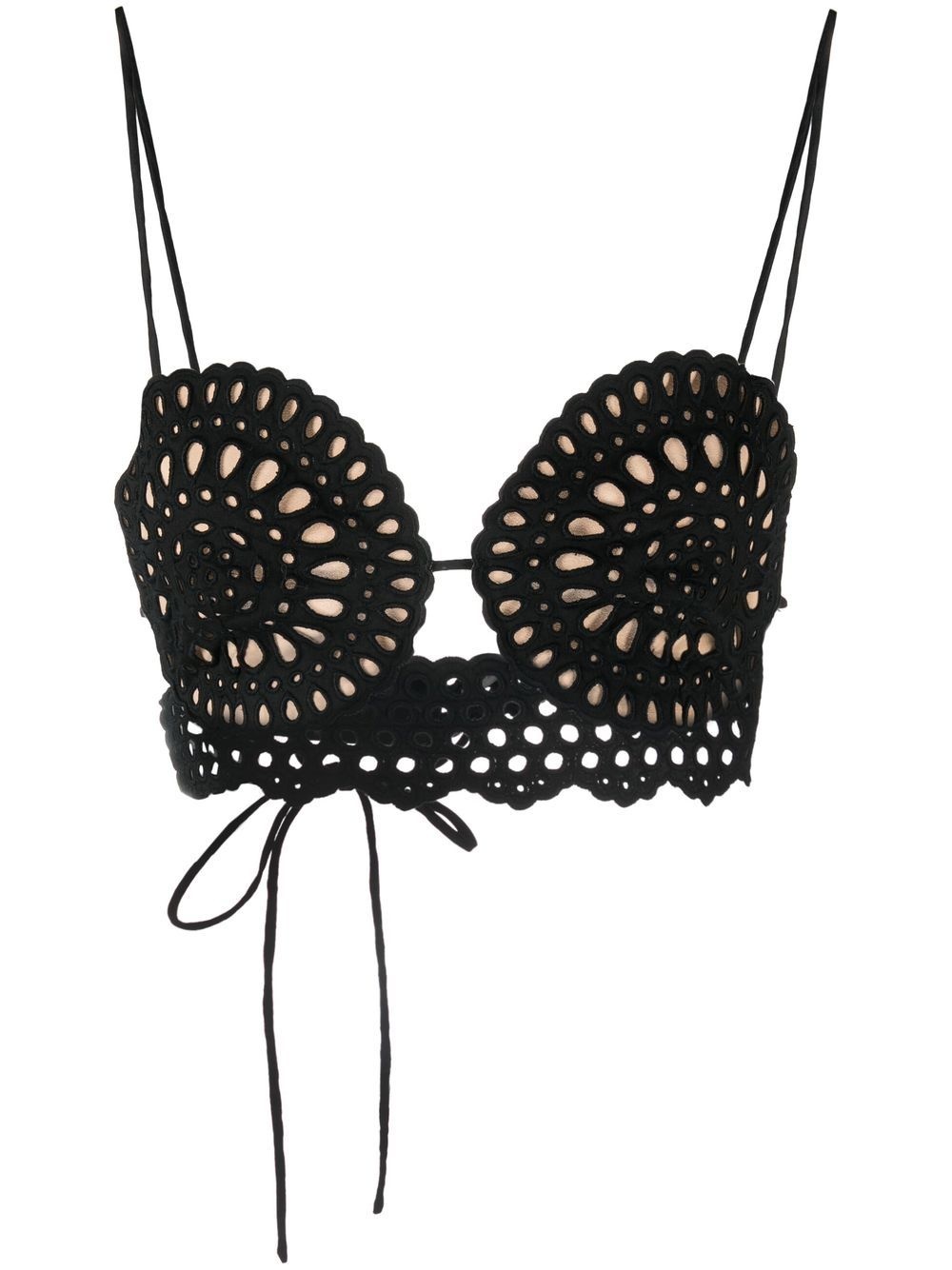 broderie-anglaise cropped top Highlights - Black - Cotton-linen blend - Broderie anglaise - Tonal stitching - Cut-out detailing - Scallop edge - Rear tie fastening Made in Italy Composition Linen/Flax 49%, Cotton 40%, Polyamide 11% SIZE & FIT Model measurements Height 5 ft 8 in(1.73 m) Bust/Chest 33.07 in(84 cm) Hips 35.03 in(89 cm) Waist 24.8 in(63 cm) FittingInformation This piece fits true to size. We recommend you get your regular size Cut for a slim fit Made with a mid-weight non-stretch fabric Washing instructions Dry Clean Only