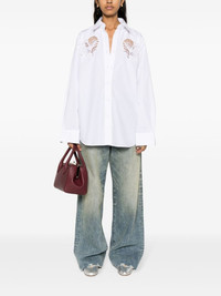 broderie-anglaise detailed cotton shirt Highlights - White - Cotton - Poplin texture - Broderie anglaise - Classic collar - Front button fastening - Fabric-covered buttons - Long sleeves - Buttoned cuffs - Crystal-embellished buttons - Curved hem Made In Italy Composition Cotton 100% SIZE & FIT Model measurements Height 5 ft 11 in(1.8 m) Bust/Chest 32.67 in(83 cm) Hips 35.82 in(91 cm) Waist 24.8 in(63 cm) FittingInformation Designed for an oversized fit, offering additional room throughout Made from a midweight non-stretch fabric This piece fits true to size – take your usual size