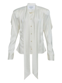 button-fastening shirt Highlights - White - Tie detail - Button fastening - Long sleeves - Gathered shoulders - Satin finish Imported Composition Satin 100% Washing instructions Read Manufacturer Guidelines