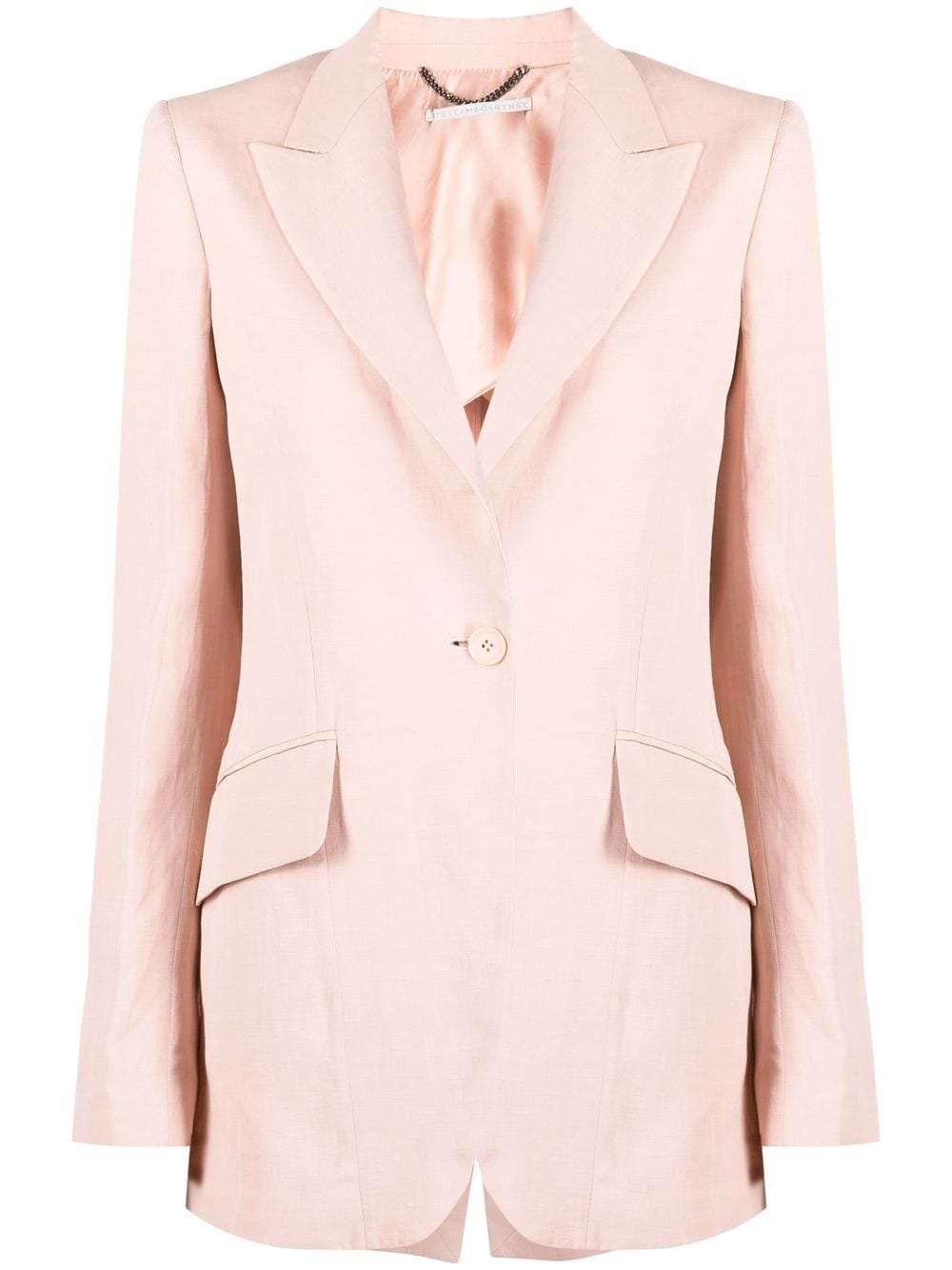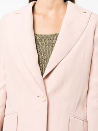 buttoned single-breasted blazer Highlights - Pink - Two side flap pockets - Front button fastening - Peak lapels - Long sleeves - Buttoned cuffs - Curved hem Made in Italy Composition Outer: Viscose 72%, Linen/Flax 28% Lining: Cupro 100%, Viscose 100% SIZE & FIT Model measurements Height 5 ft 10 in(1.78 m) Bust/Chest 30.7 in(78 cm) Hips 33.85 in(86 cm) Waist 23.22 in(59 cm) FittingInformation This piece fits true to size. We recommend you get your regular size Cut for a slim fit Made with a mid-weight non-stretch fabric Washing instructions Dry Clean Only