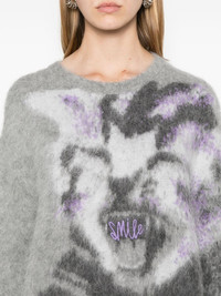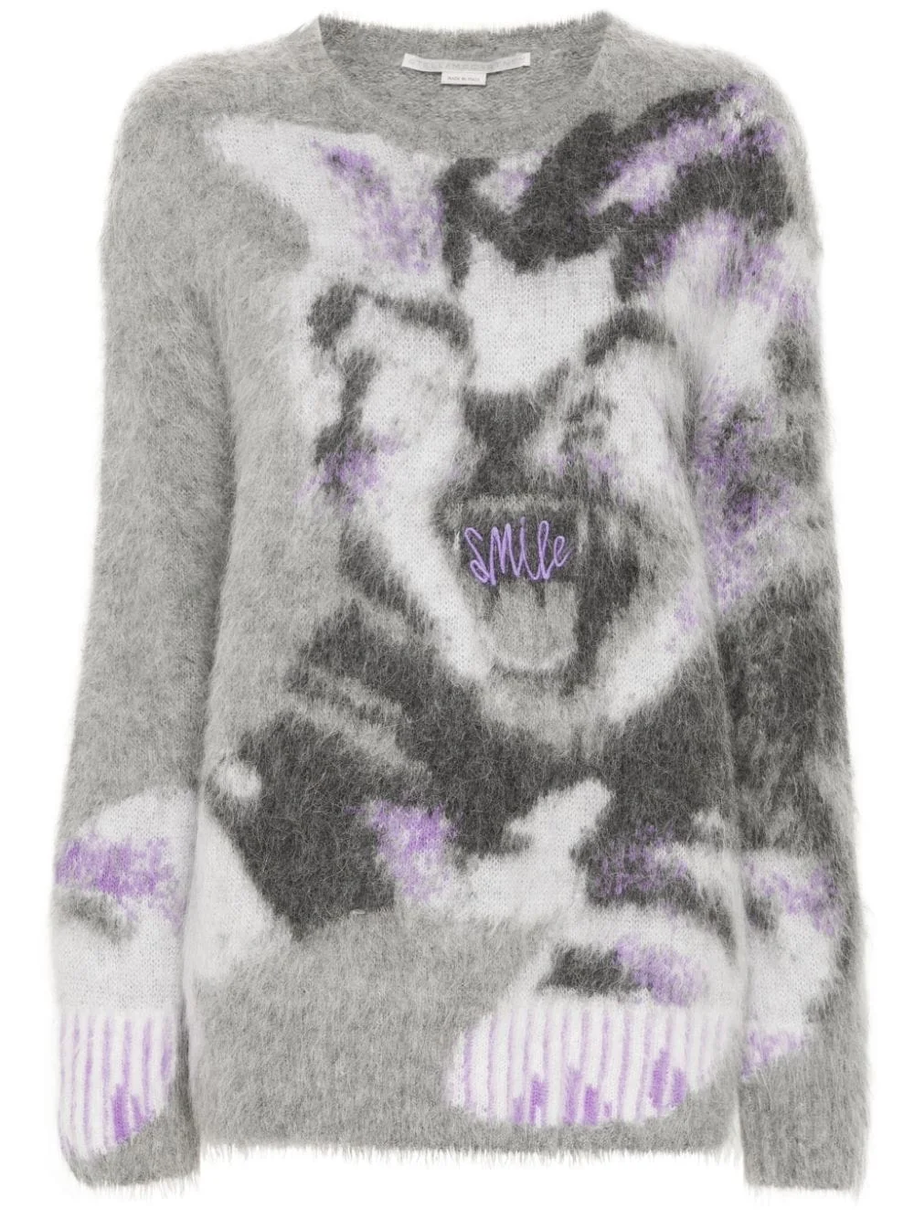 Cat intarsia sweater Highlights - Silver-tone/multicolour - Alpaca wool-blend - Intarsia knit - Brushed effect - Embroidered slogan - Crew neck - Long sleeves - Ribbed cuffs and hem - Straight hem Made in Italy Composition Polyester 100%, Alpaca 70%, Polyamide 20%, Wool 10% SIZE & FIT Model measurements Height 5 ft 9 in(1.75 m) Bust/Chest 31.88 in(81 cm) Hips 34.64 in(88 cm) Waist 24.01 in(61 cm) FittingInformation Designed to be unstructured, offering a loose fit throughout Made with a midweight knit, this piece offers some stretch This piece fits true to size – take your usual size