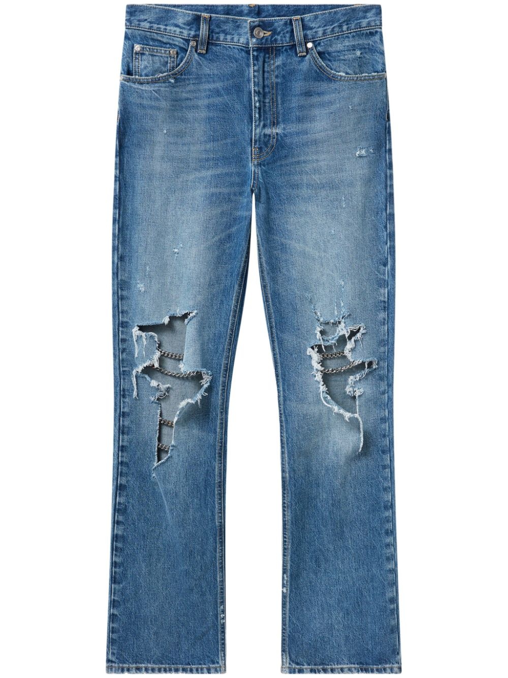 chain-detailing bootcut jeans Highlights - Blue - Cotton - Distressed effect - Chain-link detailing - Concealed fly and button fastening - Belt loops - Classic five pockets - Bootcut Made in Italy Composition Organic Cotton 100%