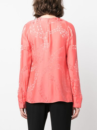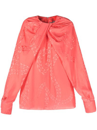chain-link print blouse Highlights - Salmon pink - Silk blend - Chain-link print - Knot detailing - Round neck - Long sleeves - Straight hem Imported Composition Viscose 53%, Silk 47% SIZE & FIT Model measurements Height 5 ft 10 in(1.79 m) Bust/Chest 32.67 in(83 cm) Hips 34.25 in(87 cm) Waist 24.4 in(62 cm) FittingInformation This piece fits true to size. We recommend you get your regular size Cut for a loose fit Made with a lightweight non-stretch fabric Washing instructions Dry Clean Only