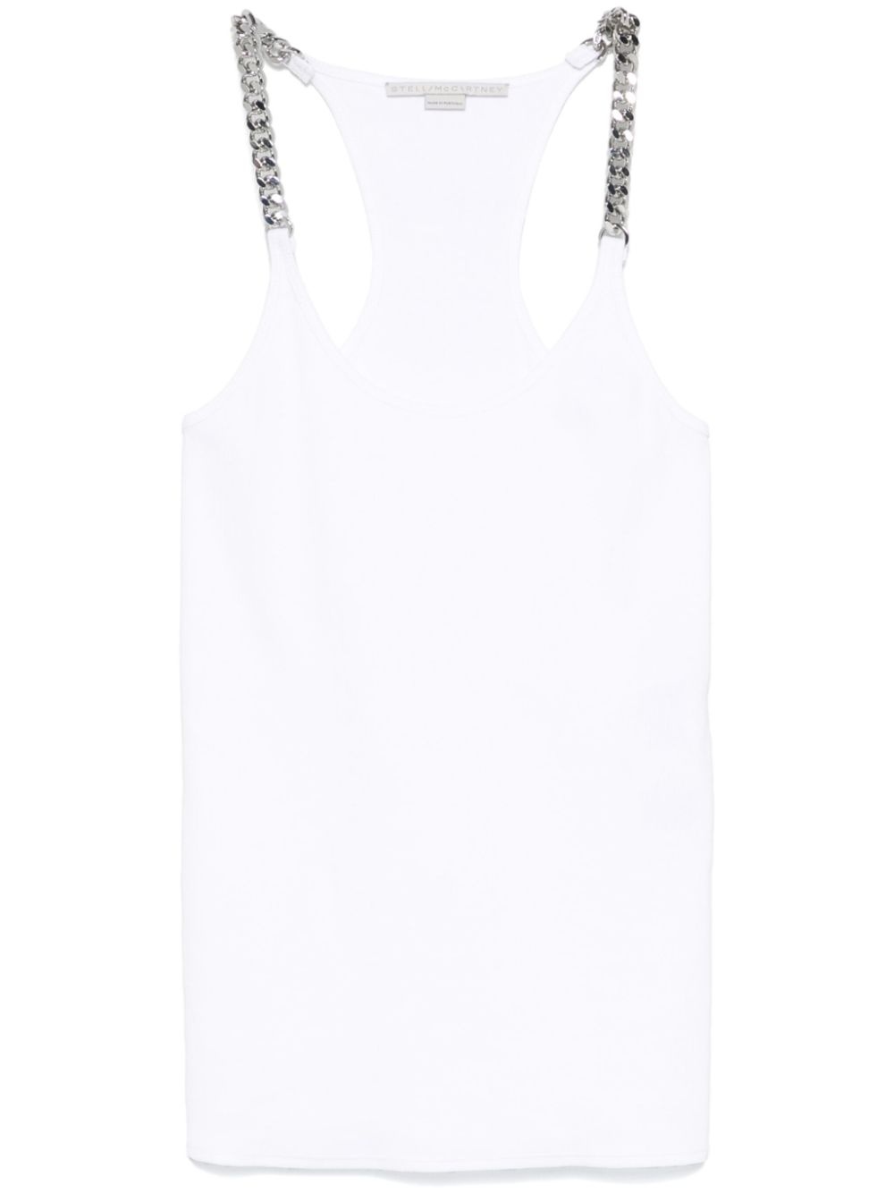 chain-straps tank top Highlights - White - Scoop neck - Chain-link trim - Racerback Imported Composition Cotton 97%, Elastane 3% SIZE & FIT Model measurements Height 5 ft 10 in(1.78 m) Bust/Chest 33.46 in(85 cm) Hips 36.22 in(92 cm) Waist 23.22 in(59 cm) FittingInformation Designed for a close fit throughout Made from a midweight stretch fabric, this piece offers elasticity and flexibility when worn