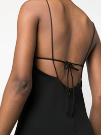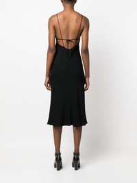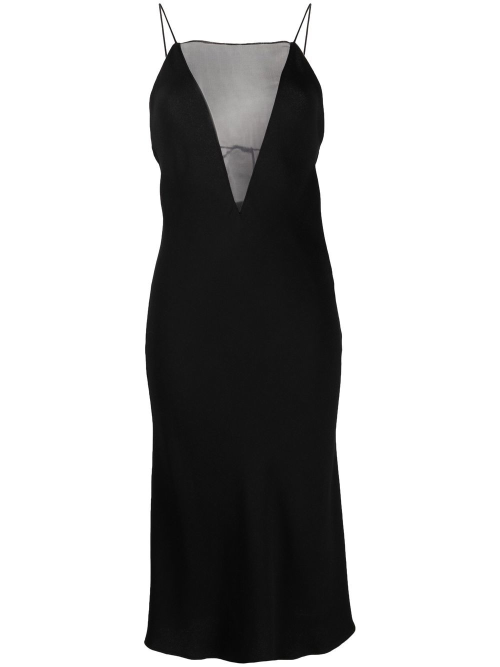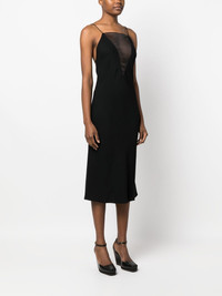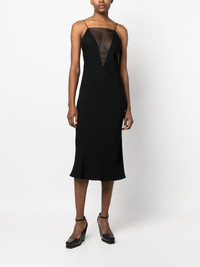 compact silk crepe midi dress Highlights - Black - Silk - Mesh detailing - Crepe texture - Spaghetti straps - Open back - Concealed rear zip fastening - Knee-length Imported Composition Silk 100%, Viscose 96%, Elastane 4% SIZE & FIT Model measurements Height 5 ft 11 in(1.8 m) Bust/Chest 31.49 in(80 cm) Hips 36.61 in(93 cm) Waist 24.4 in(62 cm) FittingInformation This piece fits true to size. We recommend you get your regular size Designed for a close fit at the bust and waist, but loose at the hip Made with a mid-weight fabric