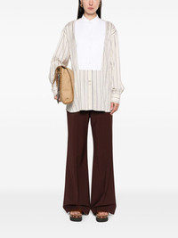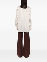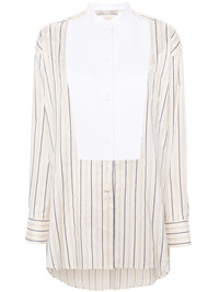 contrasting-panel striped shirt Highlights - Light beige/white/black - Silk blend/cotton - Vertical stripe print - Contrasting panel detail - Fabric-covered buttons - Strap detailing - Band collar - Front button fastening - Long sleeves with buttoned cuffs - Side slit opening - Curved hem Imported Composition Cotton 100%, Silk 76%, Polyester 24% SIZE & FIT Model measurements Height 5 ft 10 in(1.78 m) Bust/Chest 33.46 in(85 cm) Hips 36.22 in(92 cm) Waist 23.22 in(59 cm) FittingInformation Designed to be unstructured, offering a loose fit throughout Made from a midweight non-stretch fabric This piece fits true to size – take your usual size